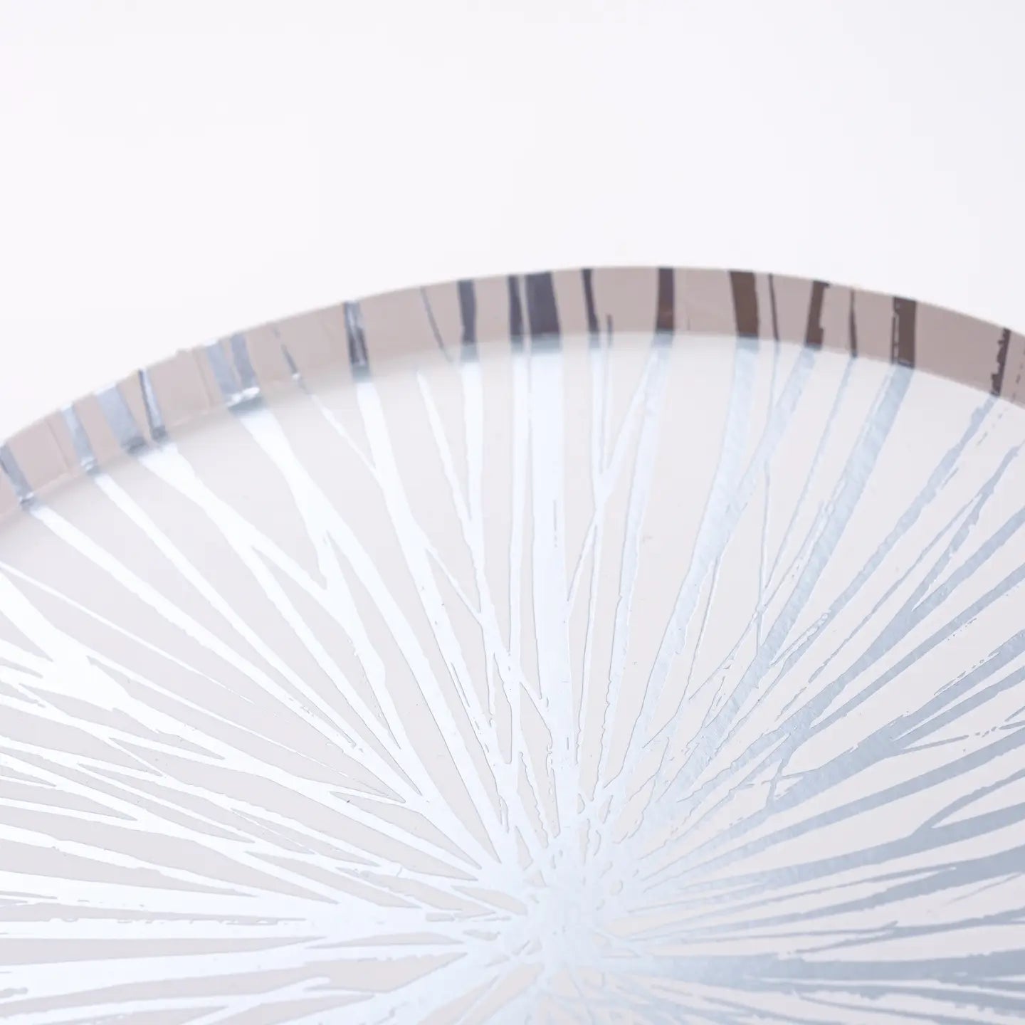 Elevate your dinner parties with Gatherings Radiance Silver Foil Dinner Plates! The silver foil sketchy lines add a touch of fancy and modern classic style to your tabletop. Impress your guests with these elegant plates that are sure to make a statement.